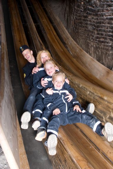 Unvergessliches Erlebnis für Kinder. Umkleiden in Bergmannskluft, eine Fahrt mit der Grubenbahn, 2 lange Rutschen und ein unterirdischer See. Ein tolles Erlebnis, das lebenslang in Erinnerung bleibt.