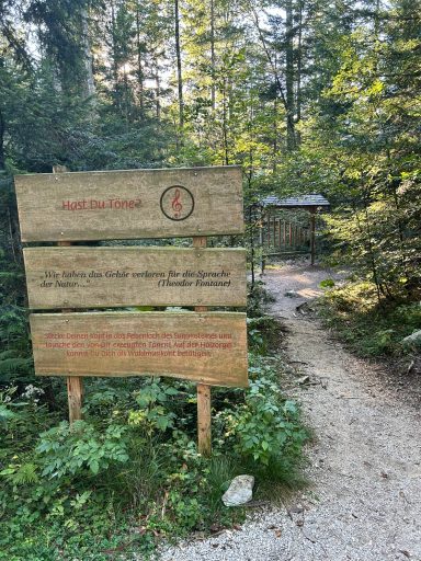 Start der Wanderung ist oberhalb vom Parkplatz direkt am Wirtshaus Adlgaß vorbei. Die Wanderung selber dauert ca. 45 Minuten, aber wenn man sich die einzelnen Stationen genauer anschaut und um den See herumgeht und die Aussicht genießt, ist man schnell 3-4 Stunden unterwegs (Beim Lösen des Parktickets beachten!). Evtl. kehrt man auf dem Rückweg noch in das Forsthaus Adlgaß ein (toller Biergarten, sehr gute Küche)