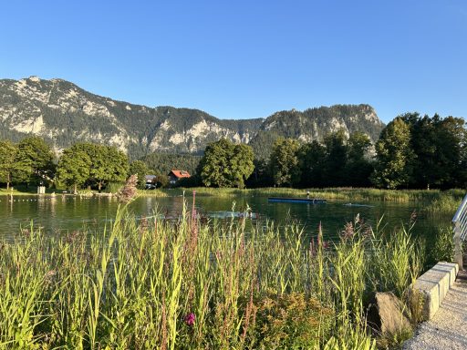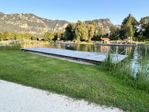 Baden mit Bergkulisse. Erfrischend und mit einem tollen Blick auf die Berge. Hunde sind nicht erlaubt. Schöner geht´s nicht … klasse !!!