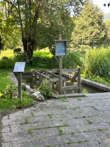 Im Kurpark gegenüber vom Kräutergarten gelegen, hinter Blumen und Büschen versteckt. Zugänglich vom Kurpark aus. Ein Arm- und ein Tretbecken, eiskaltes Wasser und drumherum Bänke. Handtuch und Badeschuhe nicht vergessen. Für eine kostenfreie wohltuende kurze Erfrischung zwischendurch